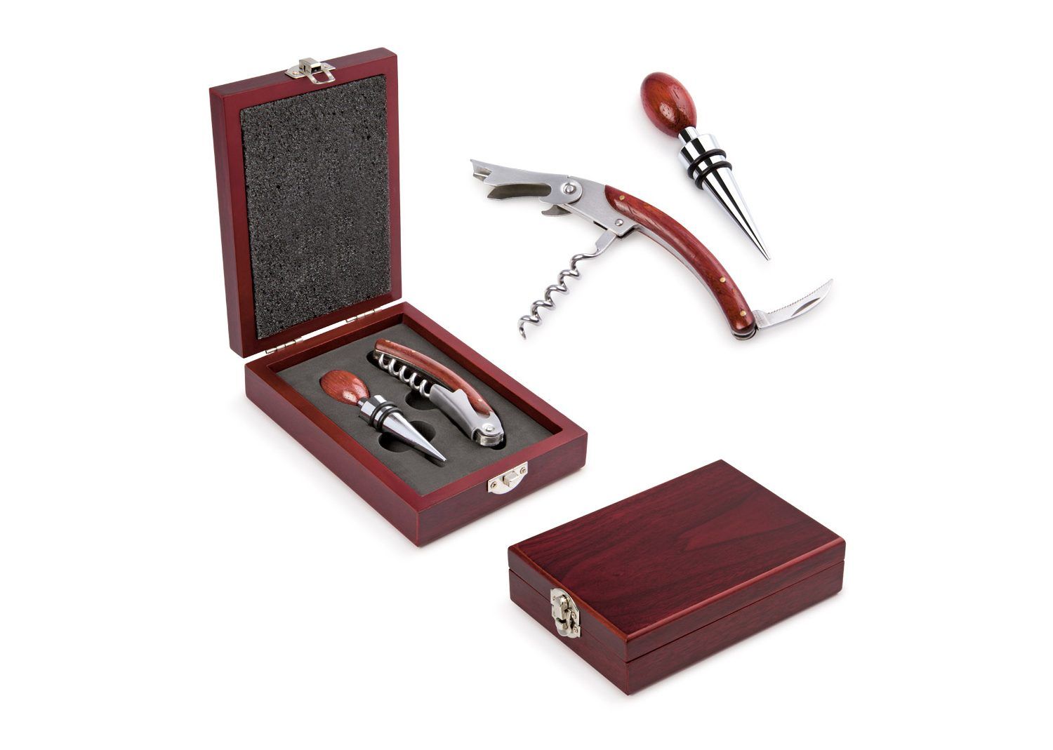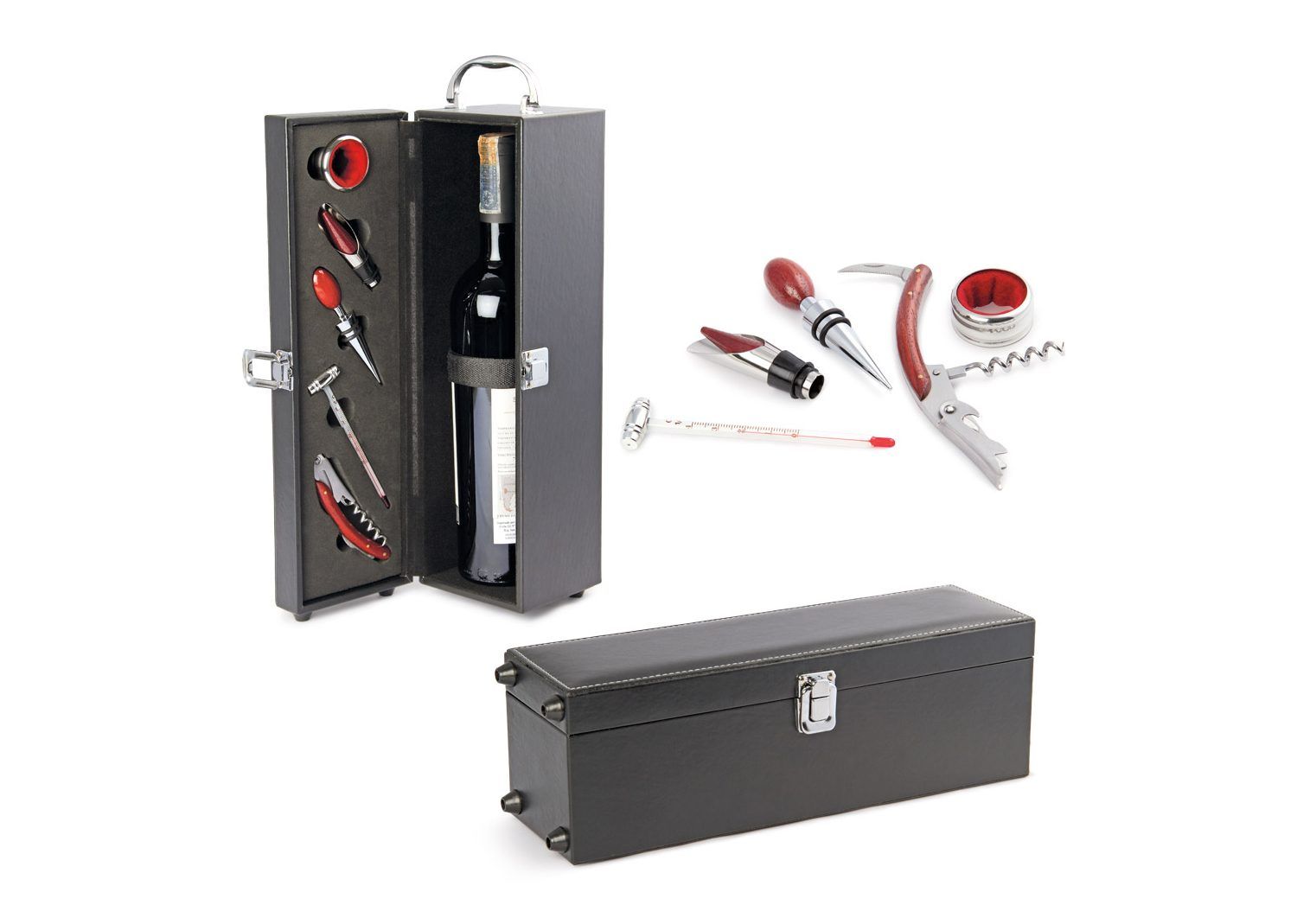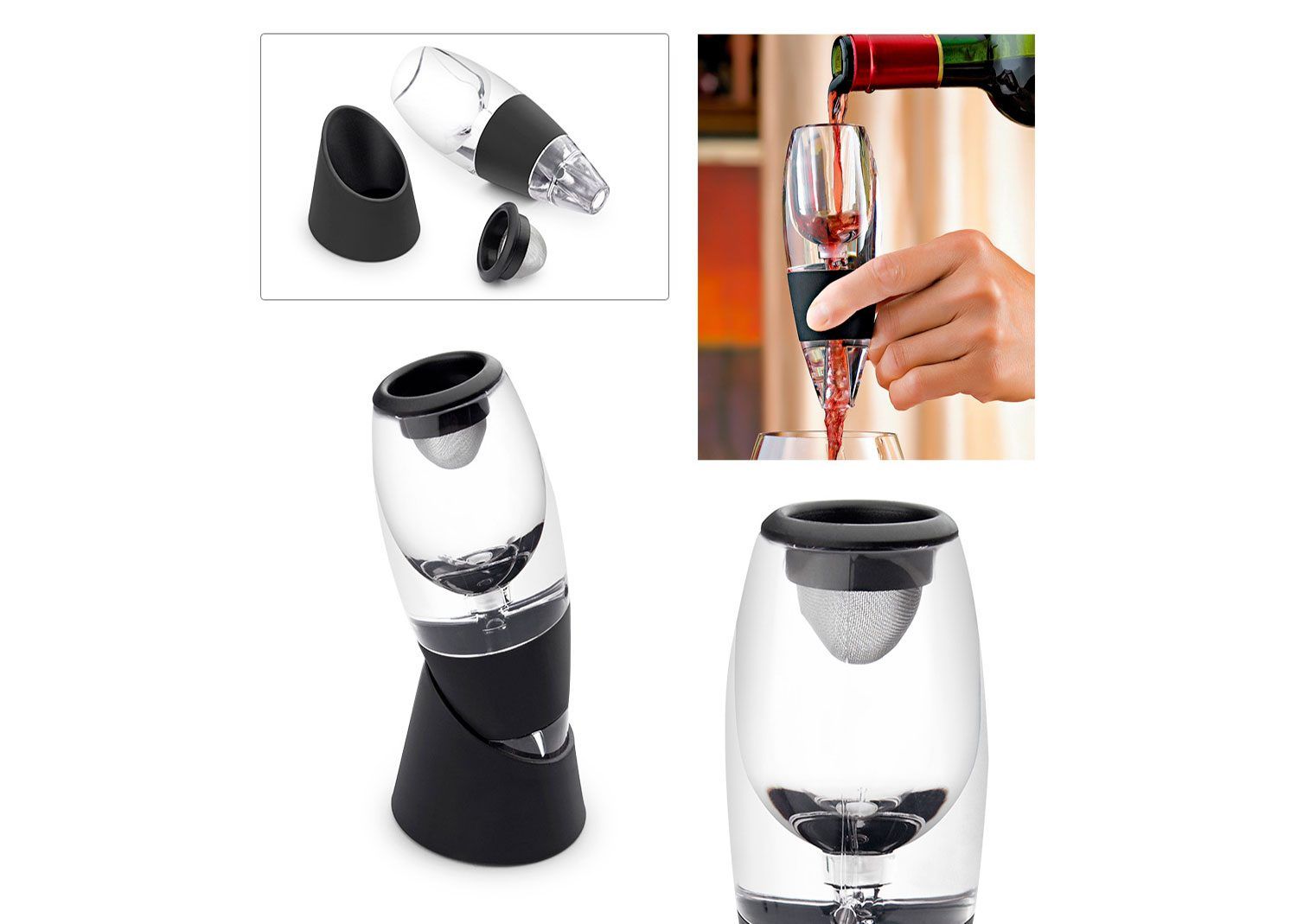 Elegantes y originales accesorio para los amantes del vino. Variedad de materiales como la madera, bambú y acrílico. Quien disfrute de un vino disfrutará de éste regalo.